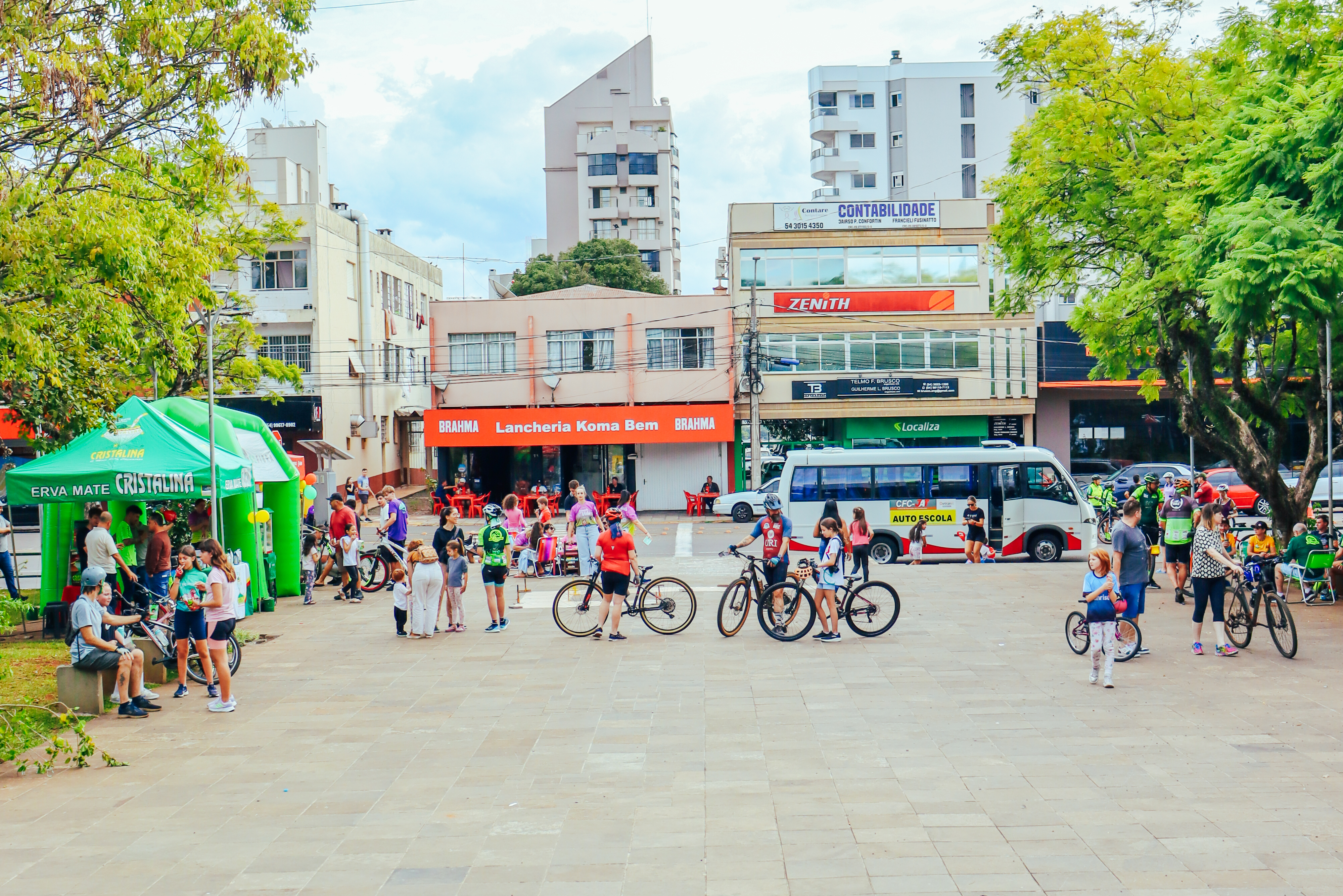 A Praça Prefeito Jayme Lago recebeu famílias de Erechim e região em uma tarde repleta de atividades educativas e interativas no domingo (18/05). A programação contou com Escolinha de Trânsito, onde as crianças aprenderam de forma lúdica sobre segurança viária, pintura de rosto com temas relacionados ao trânsito, distribuição de balões, lembranças com a frase “Eu participei do Maio Amarelo 2025”, além de uma acolhedora mateada e um gazebo com dados e informações educativas sobre prevenção de acidentes.